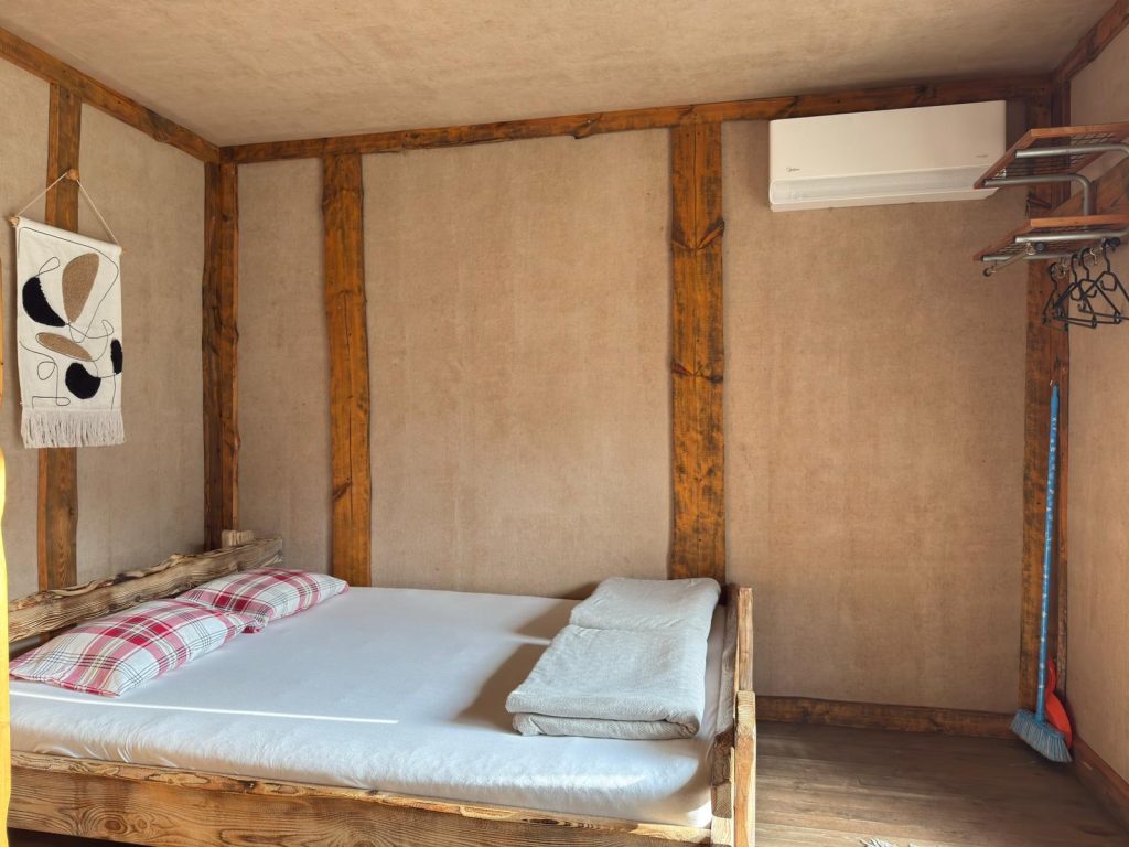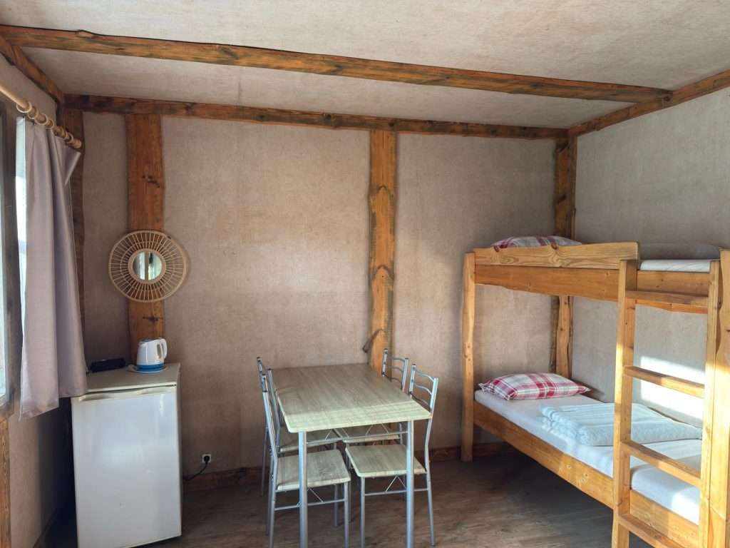 Das Campinghaus befindet sich auf einer schönen, von Kiefern umgebenen Wiese nur 300 m vom Meer entfernt. Am Haus gibt es einen Gartentisch mit Bänken. Nebenan sind WC und Duschkabinen im Geschäftshaus zu finden. Bei Vorbuchung kann man den Grill mieten. Grillkohle oder Brennholz können ebenso bei den Gastgebern gekauft werden. Das Haus kann mit Elektroheizgeräten geheizt werden. Jedes Haus verfügt über einen Kühlschrank, einen Tisch mit Stühlen, ein Doppelbett und ein Etagenbett. Bettwäsche sind im Preis eingeschlossen.